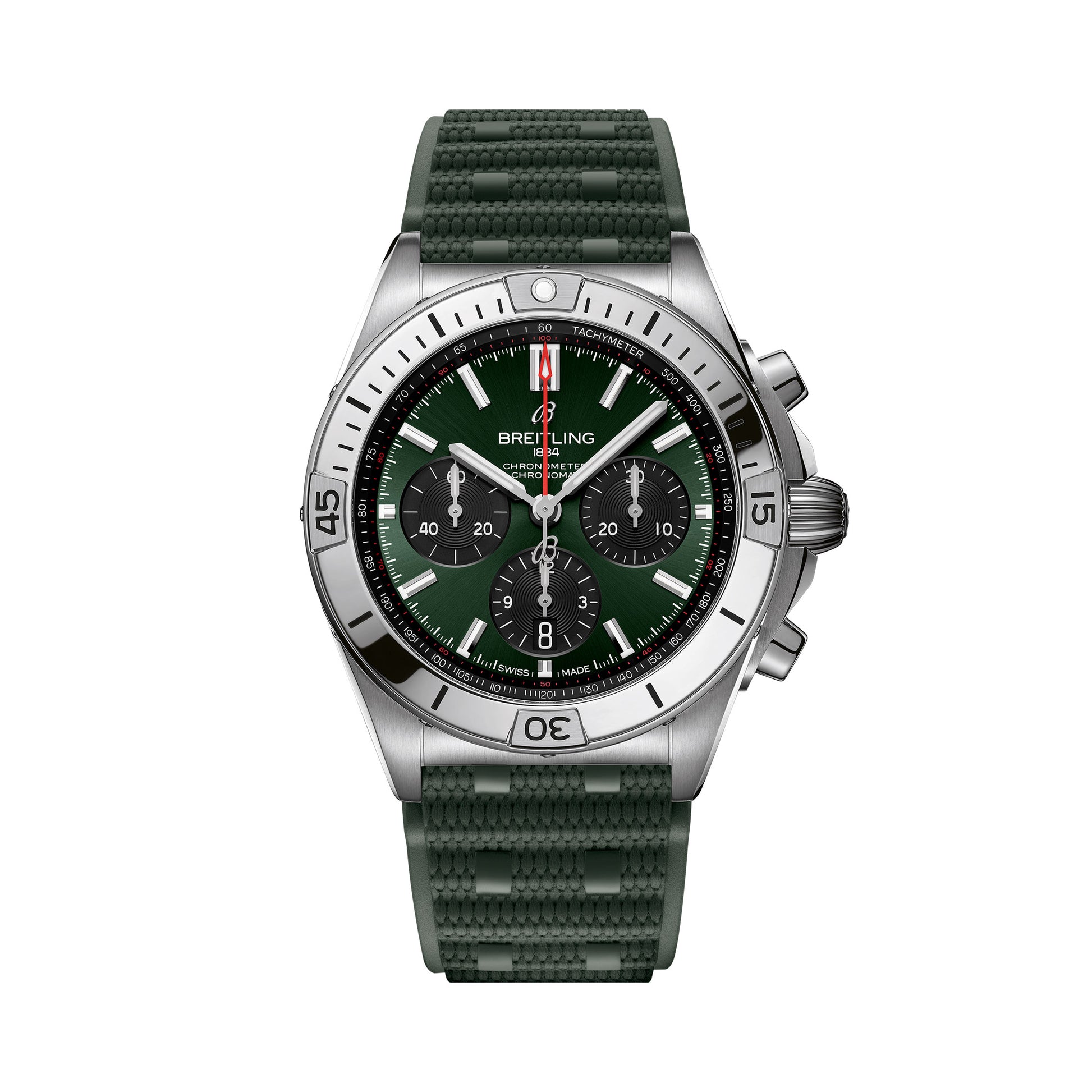 Eine Breitling-Uhr für jede Situation und Aktivität. Die Chronomat nimmt einen wichtigen Platz in der Geschichte von Breitling ein. Die Markteinführung erfolgte 1984, zu einer Zeit, in der besonders flache Quarzuhren angesagt waren. Breitling setzte dabei mutig auf eine eindrucksvoll proportionierte mechanische Uhr. Die Chronomat beruht auf dem Chronometer Frecce Tricolori, der in Zusammenarbeit mit der berühmten italienischen Flugstaffel entwickelt und 1983 auf dem Markt eingeführt wurde. Mit dem Modell wurde stilvoll das hundertjährige Bestehen von Breitling gefeiert. Es bedeutete die Rückkehr des mechanischen Chronometers zu seiner rechtmässigen herausragenden Stellung innerhalb der Marke, die ihren weltweiten Ruf auf diesen herausragenden Uhren aufbaute. Die Chronomat ist in vielen verschiedenen Materialien erhältlich – angefangen bei Edelstahl bis hin zu luxuriösem 18-karätigem Rotgold. Das Modell verfügt über ein 42-mm-Gehäuse und die legendäre Lünette mit den vier Reitern. Die Chronomat ist mit verschiedenen farbenfrohen Zifferblättern lieferbar und auf das charakteristische Rouleaux-Armband aus Metall oder Kautschuk abgestimmt. Angetrieben wird das Modell vom Breitling-Manufakturkaliber 01, einem COSC-zertifizierten Chronometer.