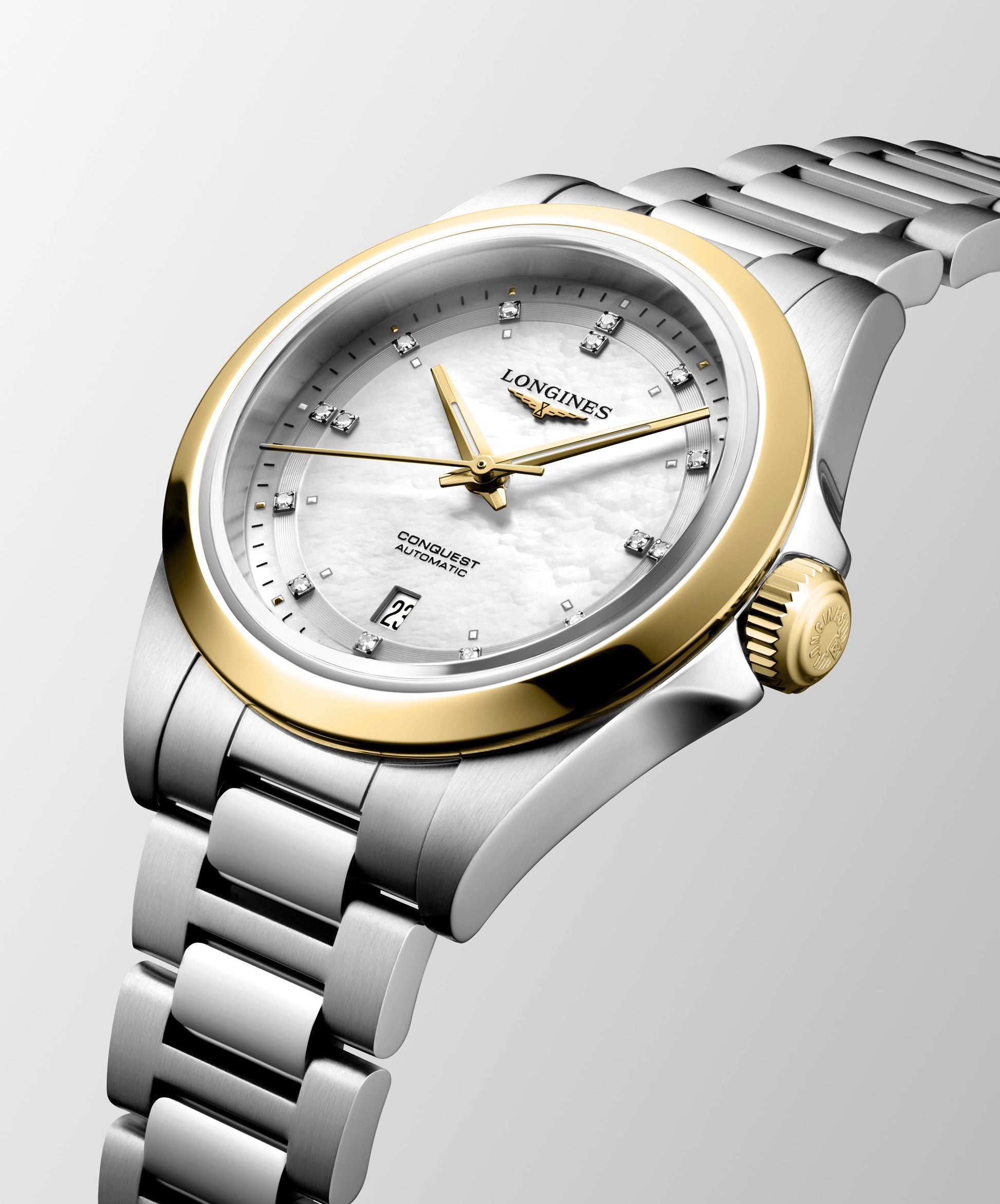 Die Conquest, die ultimative Uhr für jeden Tag, war auch die erste Longines Kollektion, deren Name 1954 durch das Eidgenössische Institut für Geistiges Eigentum geschützt wurde. Seitdem hat sich die Kollektion durch Design und Technologie weiterentwickelt, ist aber ihrer ursprünglichen Identität treu geblieben und strahlt eine harmonische Mischung aus Kühnheit, zeitgenössischem Design und sportlicher Eleganz aus. Jede Conquest Uhr zeigt das unermüdliche Engagement von Longines für Leistung und uhrmacherische Exzellenz. Mit ihrem vielseitigen Angebot steht die Reihe Conquest für das Engagement von Longines, Uhren für jede Facette des Lebens zu kreieren. Die Kollektion ist in einer Reihe von Größen, Materialien und Farben erhältlich.