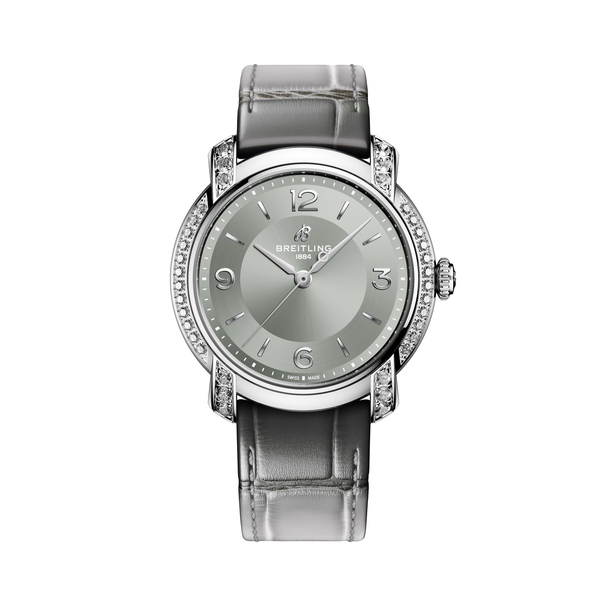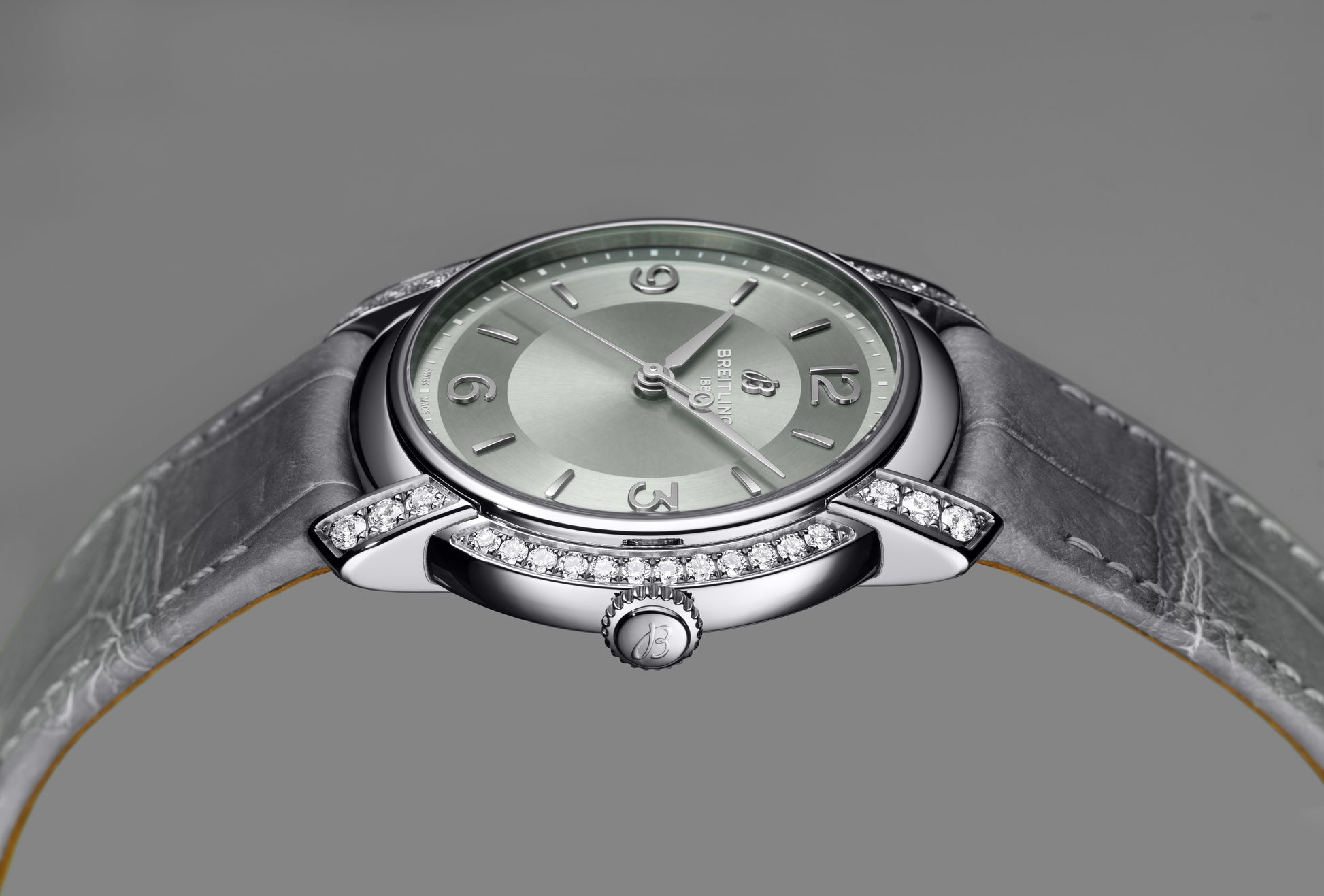 In den 1940er-Jahren führte Willy Breitling die Linie Premier ein und machte den Chronographen von einem Präzisionswerkzeug zu einem Ausdruck von Stil, mit raffinierten Materialien, eleganten Details und sogar einem der ersten Chronographen, die speziell für Frauen entworfen wurden. Später wurde seine schicke und charismatische Frau Beatrice zu seiner Muse und zu einer bestimmenden Kraft in der kreativen Ausrichtung der Marke.Nun ist die Zeit gekommen, diese ungekünstelte Eleganz mit der neuen Lady Premier in die Neuzeit zu übertragen. Skulpturale Silhouetten, strahlende Farbtöne und kaskadierende Diamanten definieren die verspielte und dennoch gehobene Designsprache. Minimalistische Ziffern, Rautenzeiger und eine skulpturale Krone vervollständigen die Uhren, die sich wie ein Schmuckstück aussehen. Die 36-mm-Automatikmodelle verbinden edle Zifferblätter mit farblich abgestuften Armbändern aus Alligatorleder. Im Inneren arbeitet das COSC-zertifizierte Automatikwerk Kaliber 10. Die Lady Premier ist das Uhrenmodell für Frauen mit Leichtigkeit, Selbstvertrauen und einer Portion Lebensfreude.