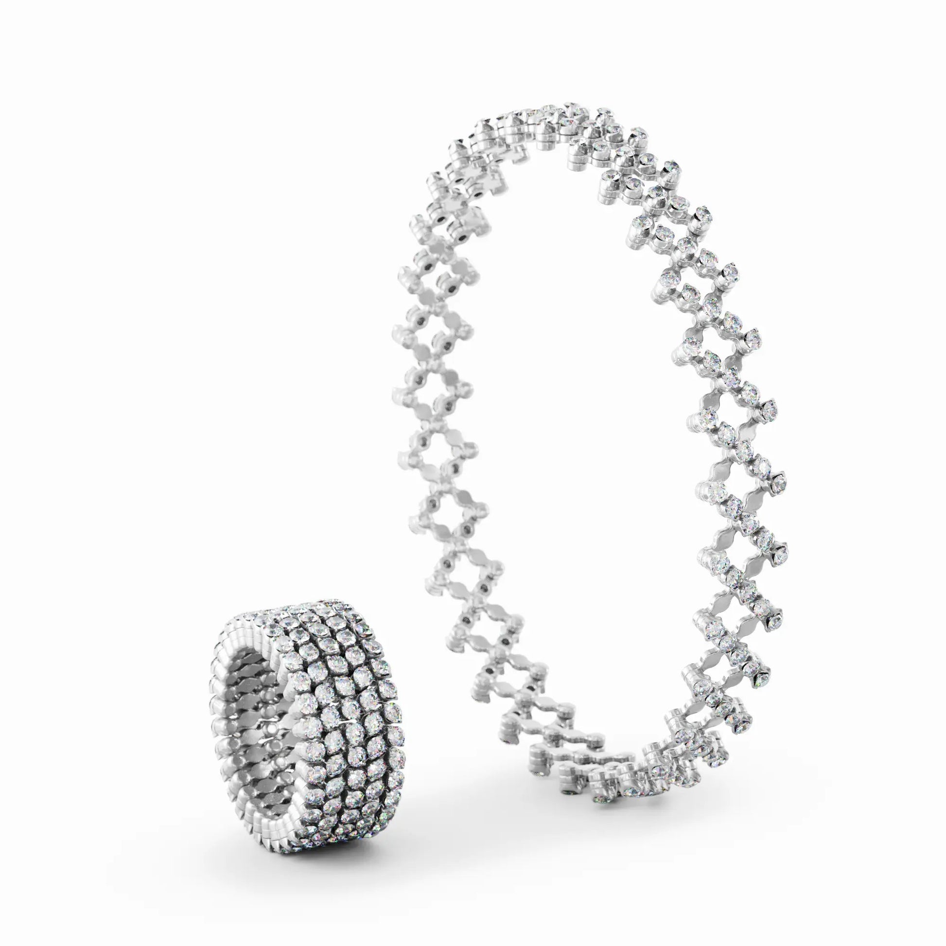Dieser patentierte Ring lässt sich von einem Ring bis hin zu einem Armband verändern. Durch die Kombination aus traditioneller italienischer Juwelenkunst und fortschrittlicher Ingenieurskunst entstehen Schmuckstücke, die sich individuell an Ihren jeweiligen Tragewunsch anpassen lassen. Ob als breiter Ring am Ringfinger oder als funkelndes Armband, die vielseitig kombinierbaren Schmuckstücke aus feinsten Materialien sind in sekundenschnelle wandelbar.