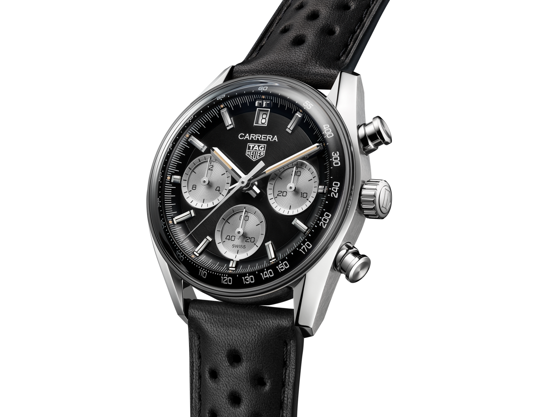 Diese prestigeträchtige schwarze 39-mm-Version der TAG Heuer „Glassbox“ ist eine Neuinterpretation des Modells Reverse Panda 2447 NS, die das charakteristische Design der Carrera mit einem modernen Touch versieht. Mit ihrem luxuriösen, durchbrochenen Kalbslederarmband ist diese Uhr angetrieben zum Wagemut.