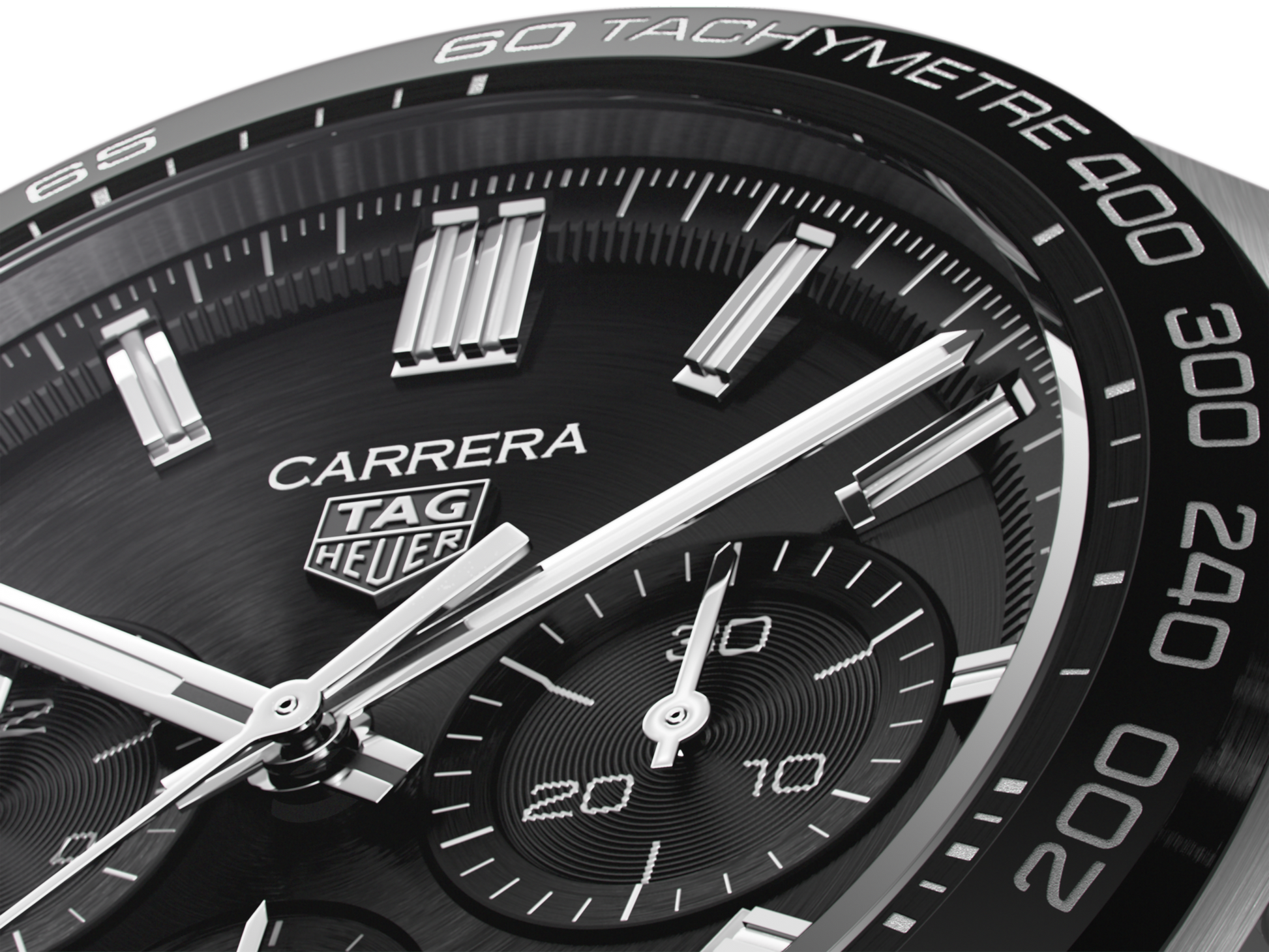 Auf diesen 44 mm großen TAG Heuer Carrera Chronograph ist Verlass. Das schwarze Zifferblatt mit schwarzen Zählern besticht durch ein sportlich-elegantes Design. Im Inneren befindet sich unser automatisches Manufakturwerk TH20-00 mit einer Gangreserve von 80 Stunden.