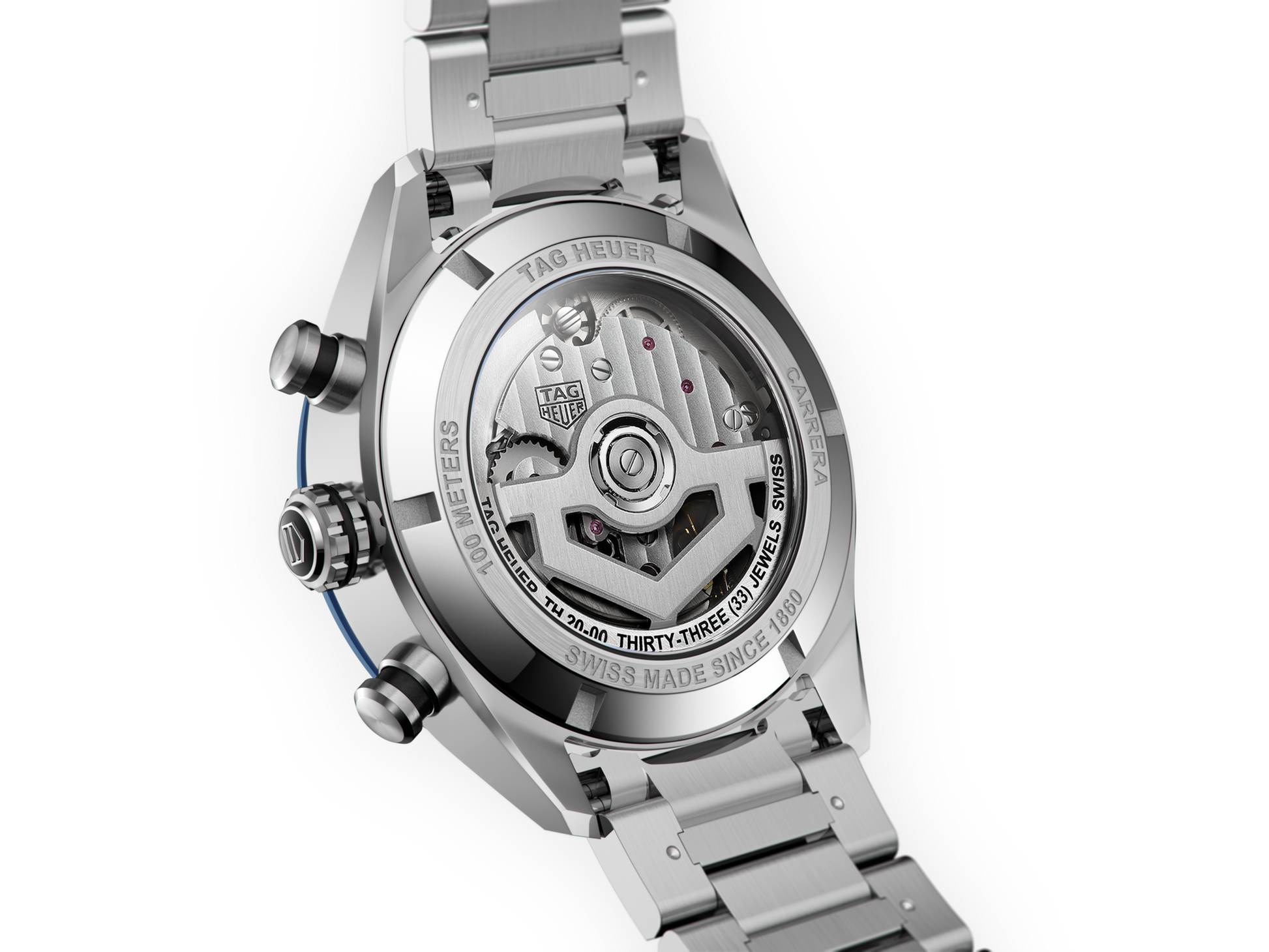 Eine sportlich-elegante TAG Heuer Carrera mit einem 44-mm-Gehäuse aus fein gebürstetem, poliertem Edelstahl mit blauem Zifferblatt und H-förmigem Armband aus Edelstahl. Unser hauseigenes Automatikwerk TH20-00 vereint Luxus und Technik.